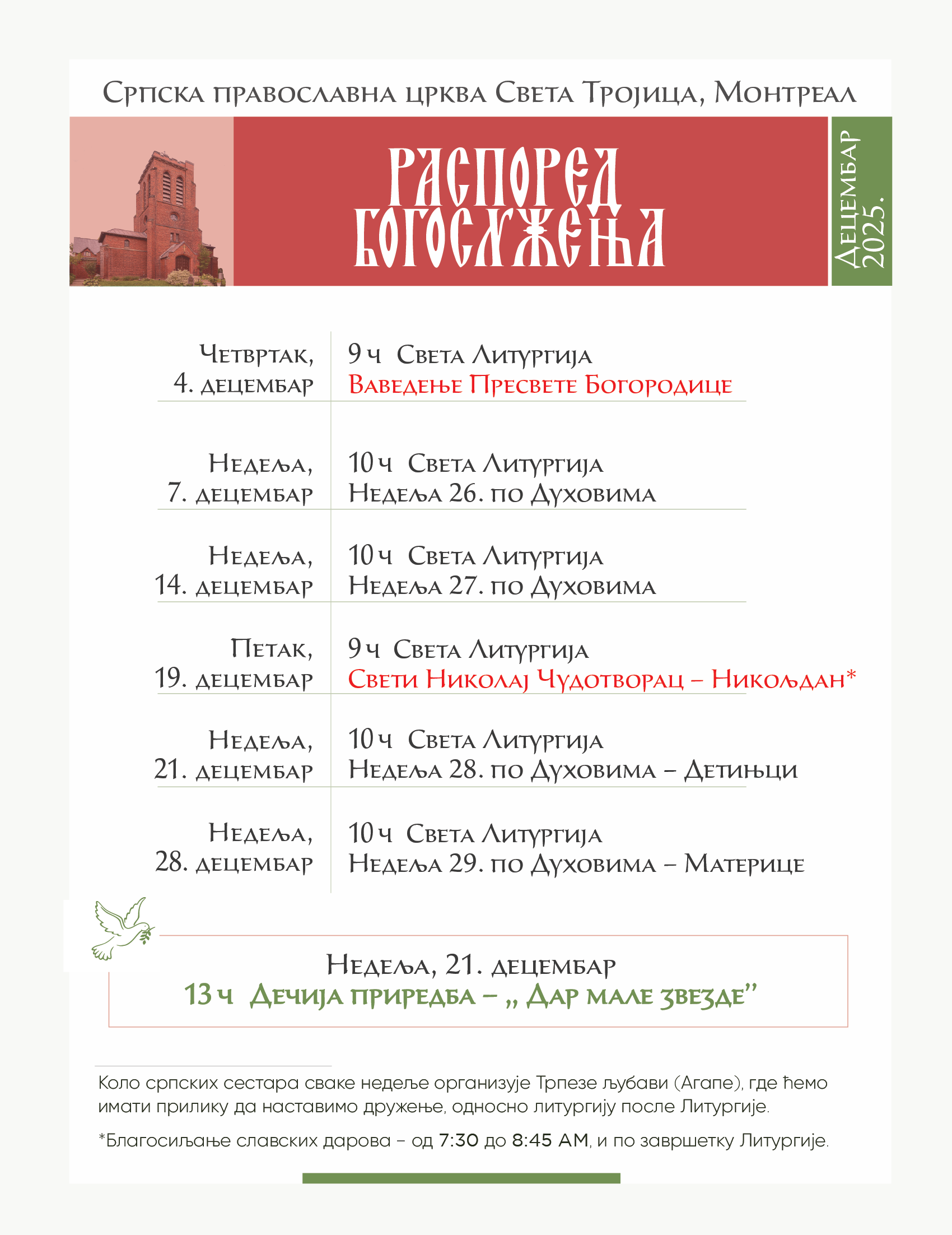 РАСПОРЕД БОГОСЛУЖЕЊА